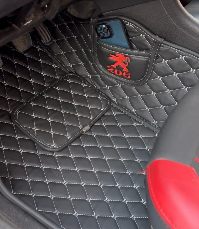 کفپوش خودرو پژو 206 و کفی صندوق ماشین پژو 206 از جنس چرم پنج بعدی گلدوزی شده که دقیقا طبق ابعاد کفی ماشین 206 برش لیزری میخورد و کاملا فیت خودرو می باشد که به کفپوشی که گارانتی خودرو را باطل نمیکند مشهور است ، این کفپوش ماشین یکسال ضمانت و گارانتی دارد ضد خش و قابل شست و است و در رنگبندی های مختلف قابل سفارش است . کفی ماشین پژو دارای جیب موبایل میباشد که مستقیم از کارخانه کفپوش پنج بعدی تولید شده و از طریق تیپاکس ارسال میشود . این نوع کفپوش چرمی به اسامی مختلف از جمله کفپوش ۶ بعدی خودرو ،کفپوش چرمی گلدوزی،کفپوش سه بعدی خودرو و... در بازار ایران و تهران موجود می باشد .